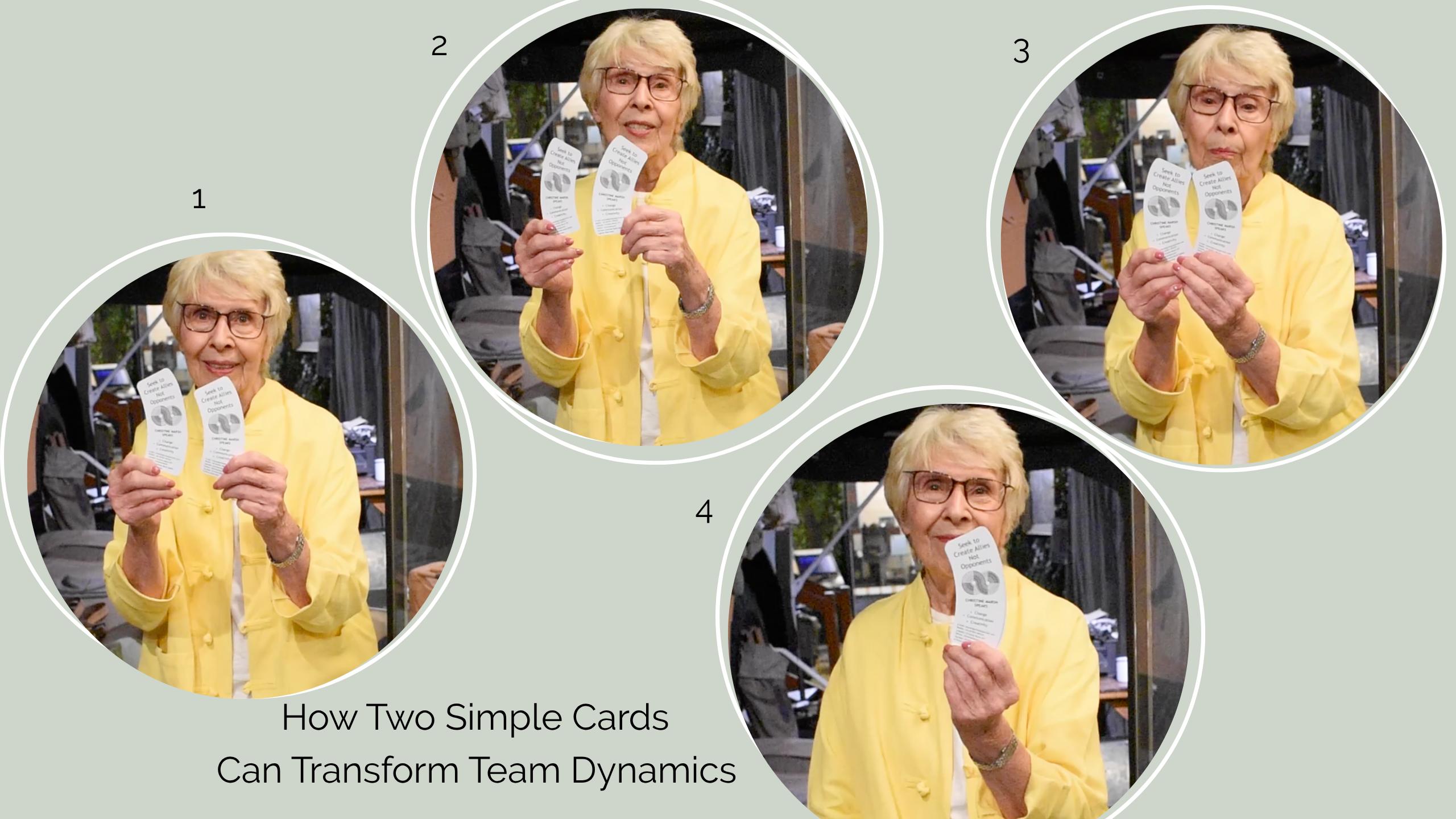 Step 3: Finding Equal Ground. Next, I rotated just my card while theirs remained stationary. Now, both appeared identical in size. “When we adjust our approach – not theirs, we can create the perception of equals, each bringing valuable expertise to the team.”